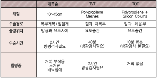 슬링수술법을 대체하여 최근 많은 환자들이 선호하는 수술법입니다. |